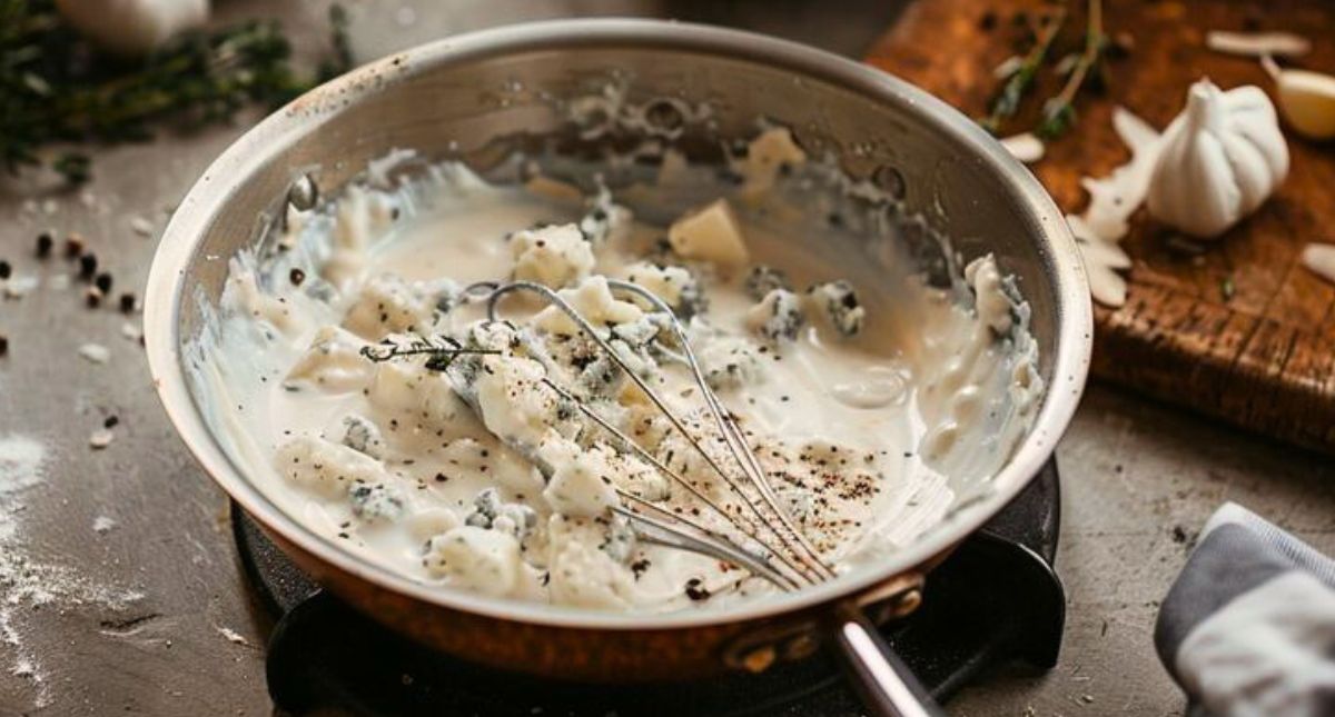 Ajoutez le roquefort émietté. Laissez-le fondre doucement sans bouillir.